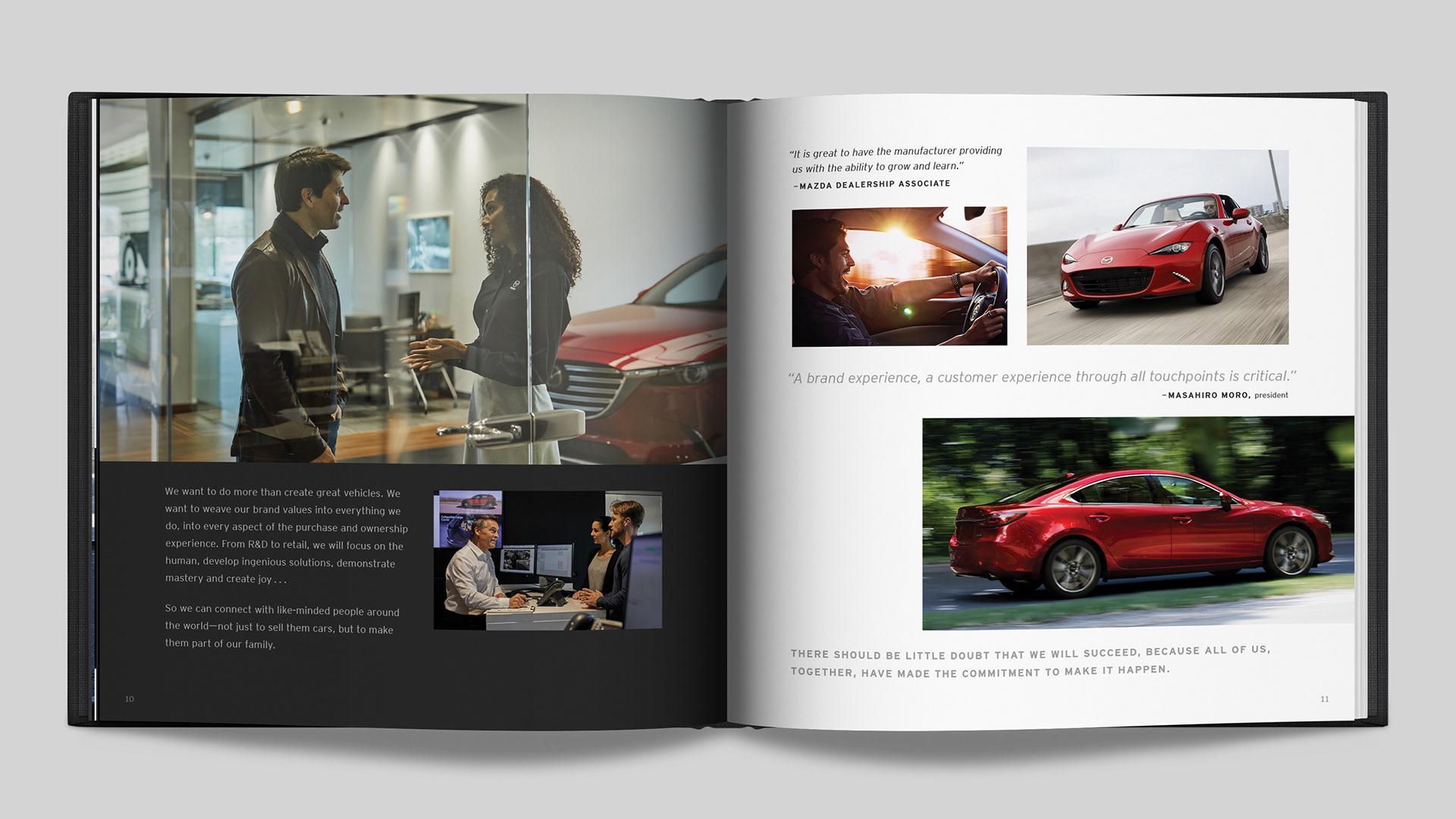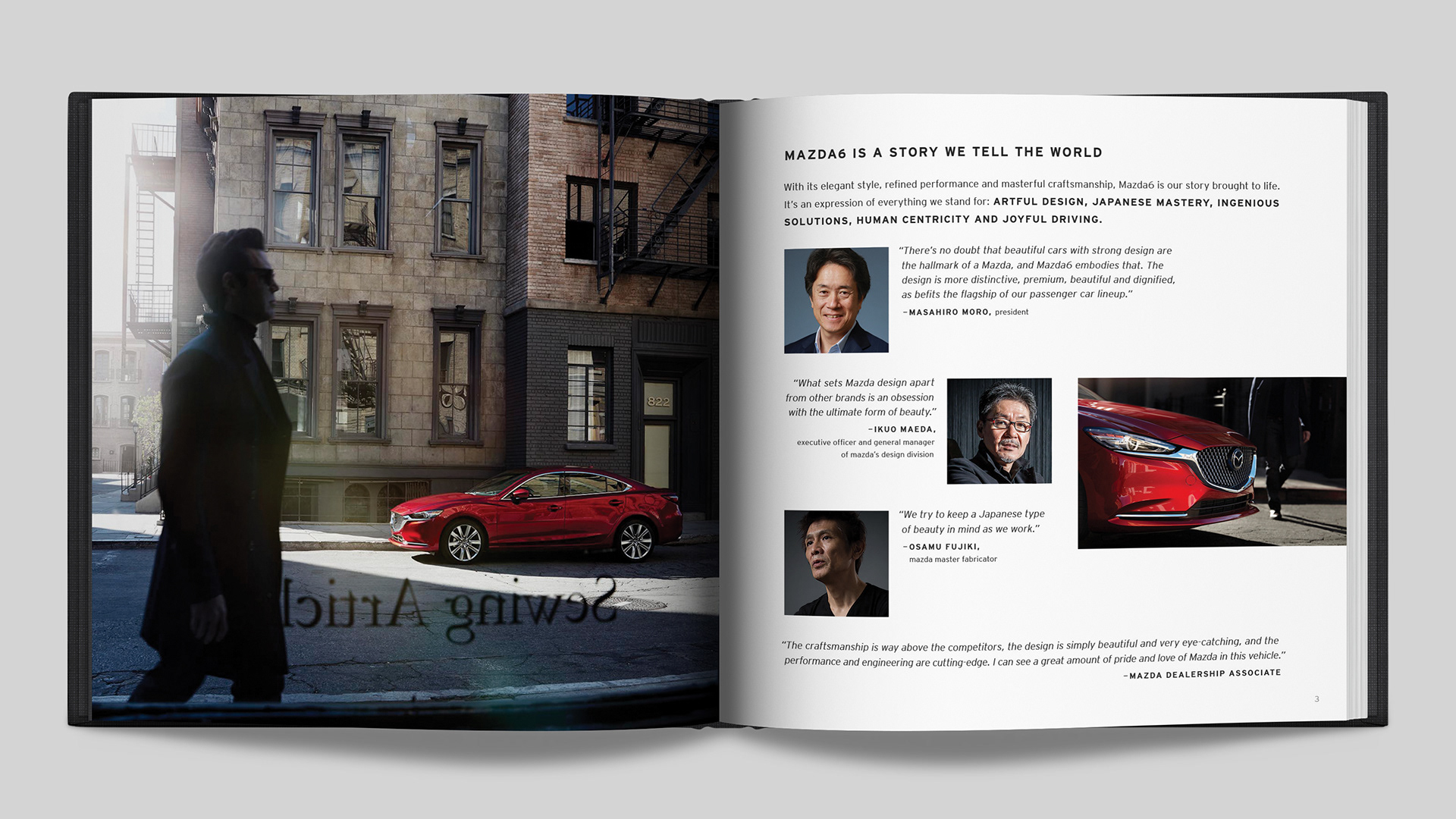 Having recently completed a series of Mazda6 brand studio events across the country, AMCI wanted a way to share the success of the program with Mazda. We designed a book titled The Spirit of Mazda6 to celebrate how far the brand had come and its promising future.