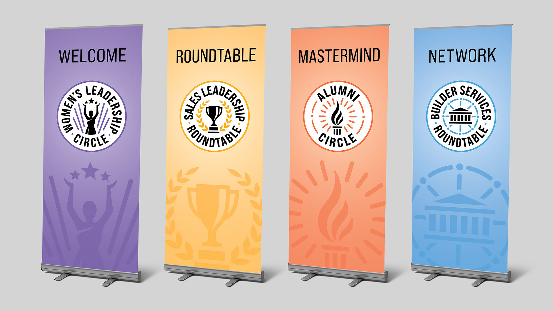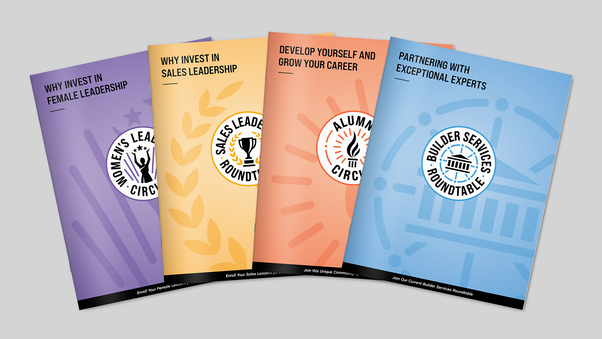 Shore Consulting asked us to rebrand The Roundtable Mastermind Network into a visual system that unites all programs while preserving each group’s identity. We created a series of distinctive badges featuring custom symbols, bold typography, and a vibrant color palette to convey pride, strength and leadership. Each badge honors individuals who meet the high standards of their program, and together the series forms a unified visual identity celebrating achievement and distinction.